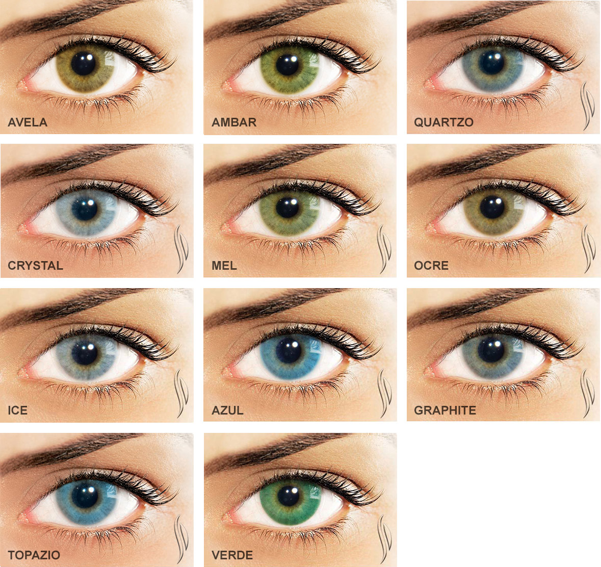 Solotica Hidrocor are the most opaque lenses in the Solotica range, with no limbal ring. Hidrocor contact lenses are available in many different colors - azul, mel, verde, ocre, graphite, ice, quartzo, topazio, crystal, ambar, avela.